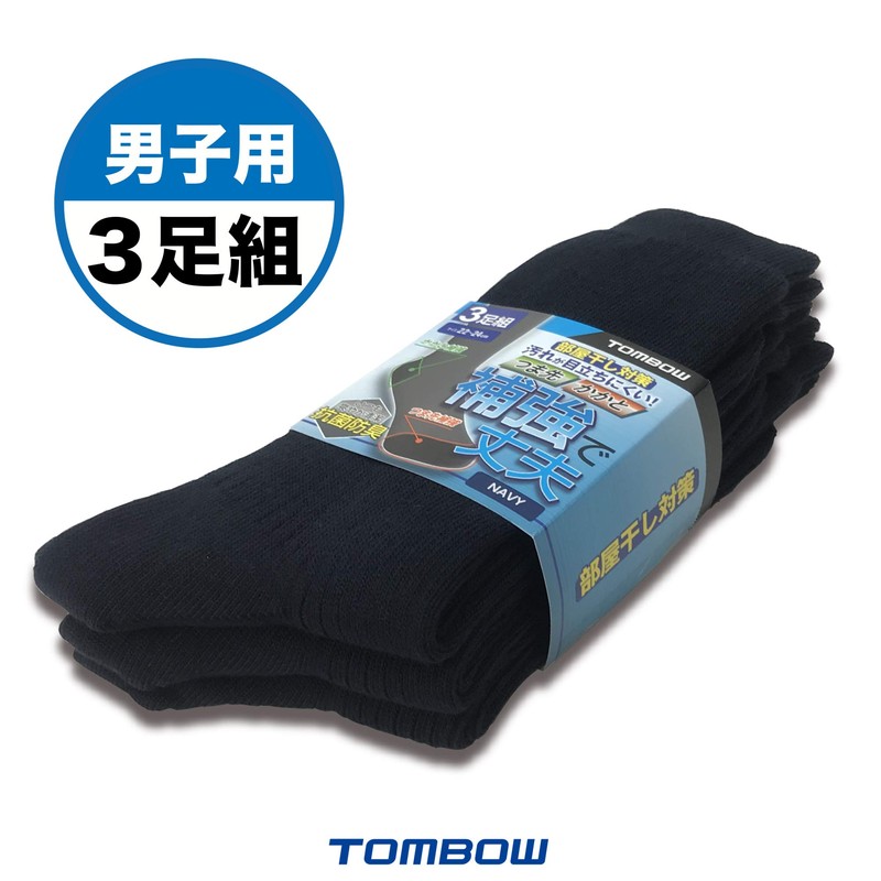 Tombow T-11-8 Boys' School Socks, Antibacterial and Deodorizing, Set of 3 Pairs, navy