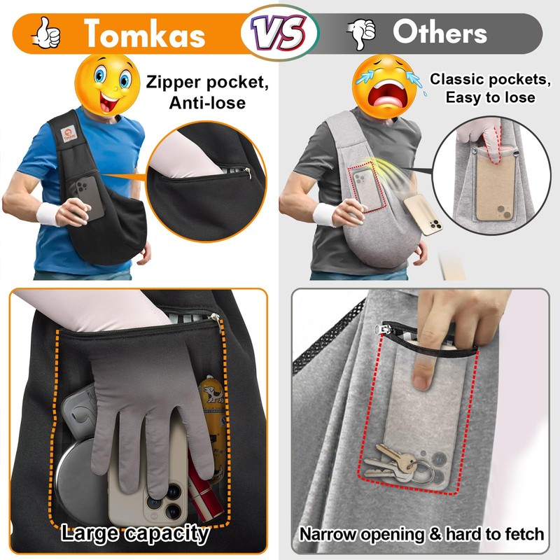 - Large-Capacity Zippered Pockets: Stay organized with TOMKAS's front zippered pocket that can store all of your essentials, such as your phone, keys, cards, wallet, and dog leash. Our reliable carrier is designed with your convenience in mind. Unlike other dog slings without zippered pockets, our pocket keeps your belongings secure throughout use.