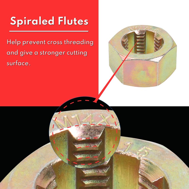 - The thread chaser set is made of high-quality carbon steel, providing strength and maximum durability. The dies and taps are hex-shaped, making them compatible with a wrench or socket.