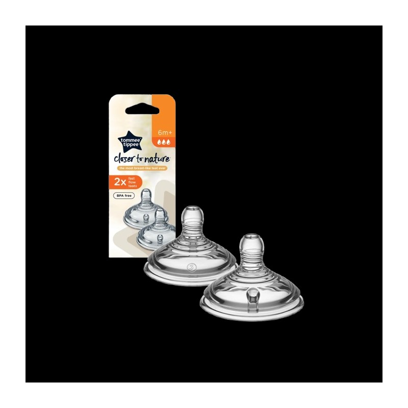 Tommee Tippee Closer To Nature Silicone Baby Bottle Teats Fast Flow 6+m 2pcs