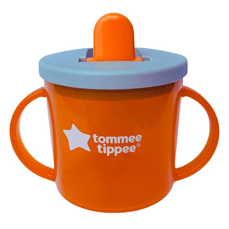 Tommee Tippee Free Flow First Cup Sippy Cup with Fold-Down, Leak-Proof Spout, 4m+, Red and Turquoise, 2 Pack
