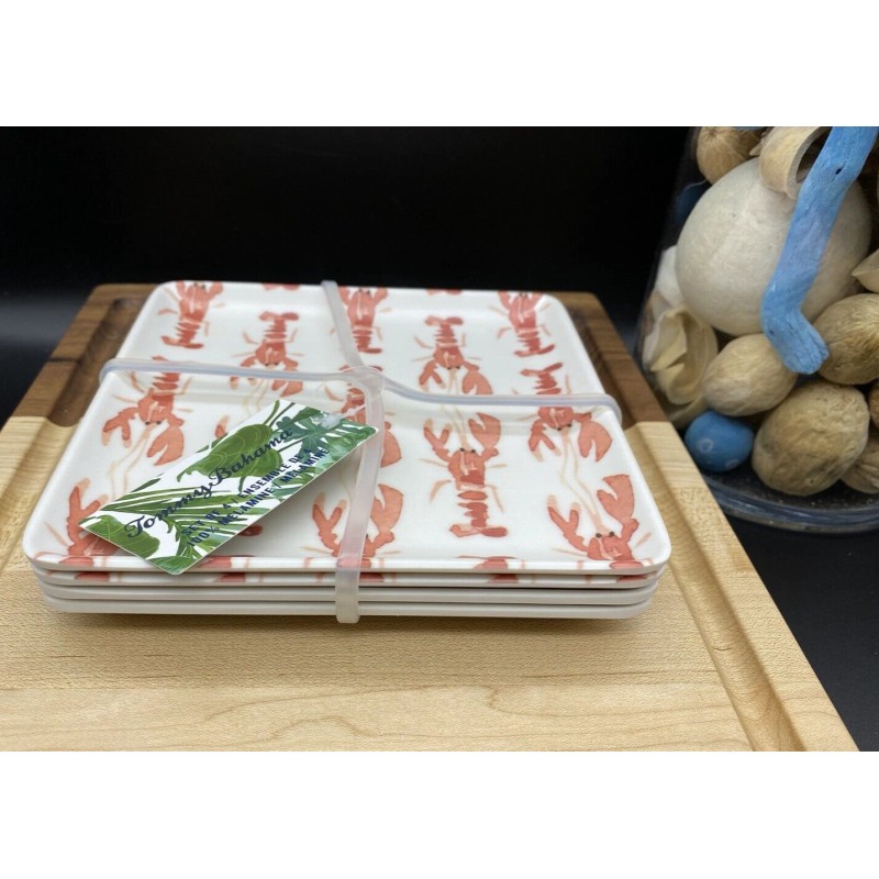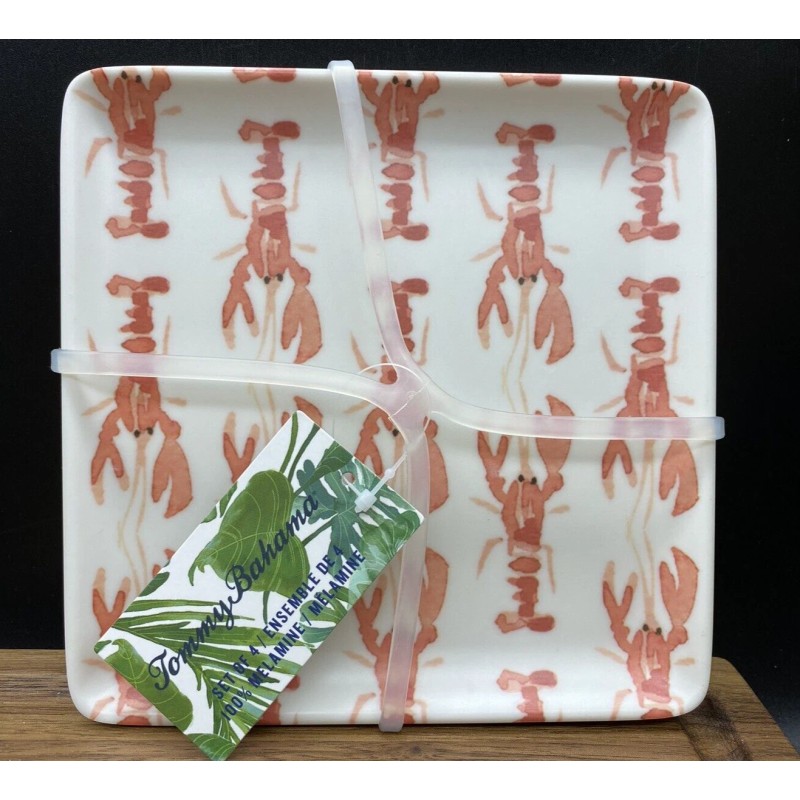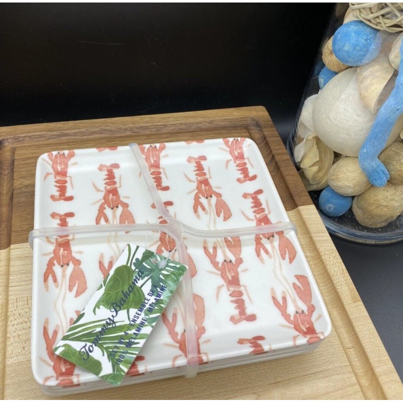 TOMMY BAHAMA MELAMINE Lobster Red White Square Appetizer Plates NEW (Set of 4)