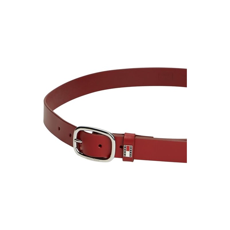 Tommy Jeans Women's Oval Leather Belt, Red (Rustic Cherry)