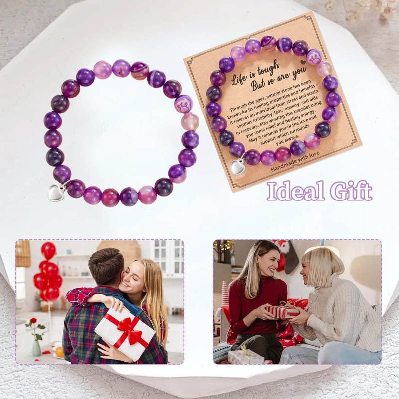 Tomtary Anxiety Bracelets for Women, Natural Gemstone Bead Bracelet Crystal Healing Bracelet with Heart Shaped Pendant Bracelet Gifts for Her Women Christmas Birthday Mothers Day