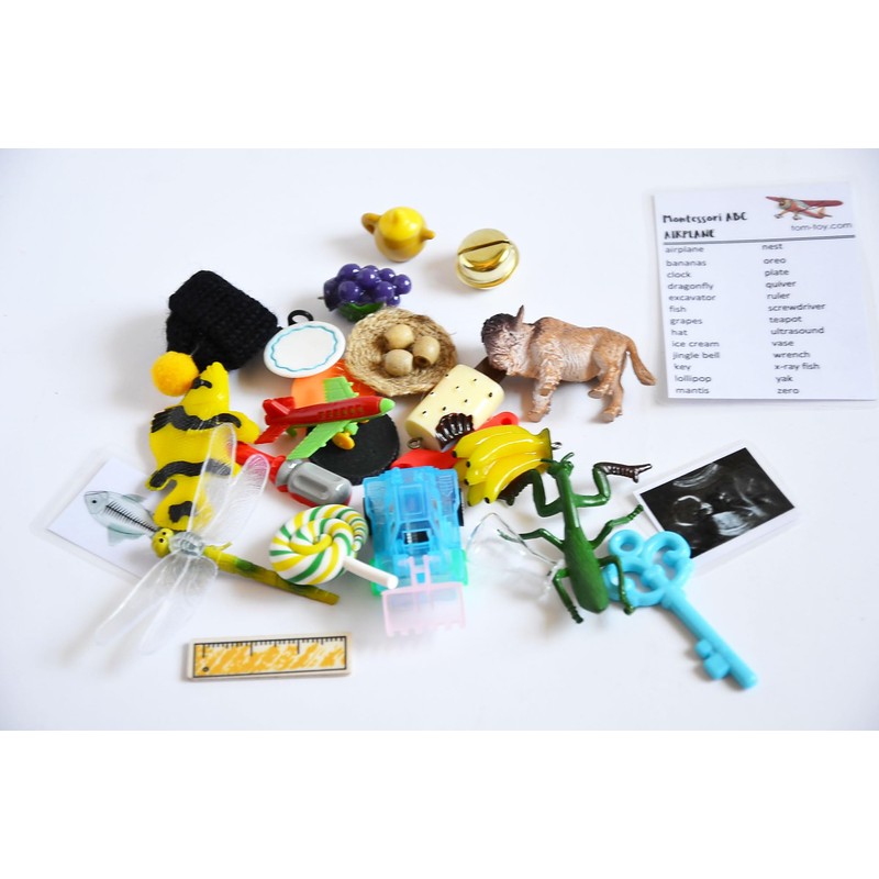 TomToy Airplane Alphabet Objects Set for Montessori ABC Box, Set of 26 Objects