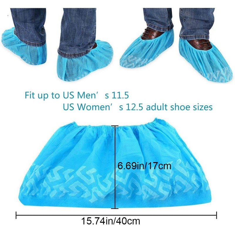 - Size: 40X17cm(15.74x 6.69 inch ). Package Included: 100 Pairs(200 Pieces in a Pack) Disposable Shoe Covers.Our Large Size industrial-grade covers contain an elastic band for flexibility to fit up to US Men's above 12 and US Women's above 13 adult shoe sizes and help keep the covers snug on your feet.