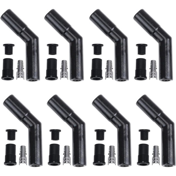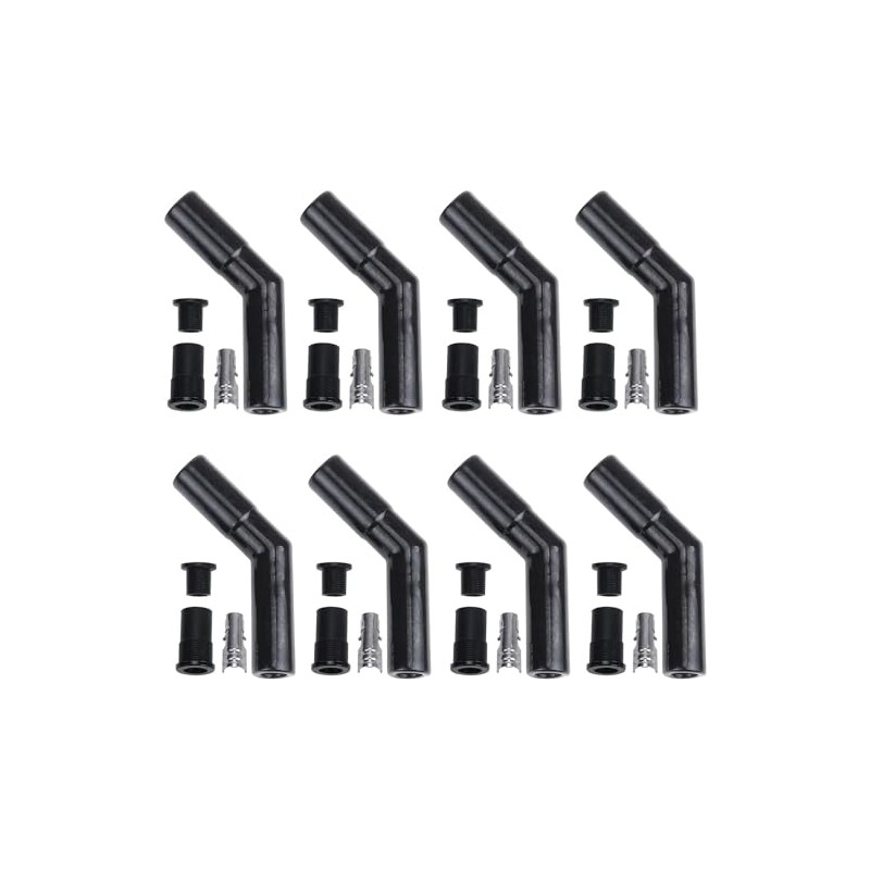 Ton's Performance Black Ceramic Spark Plug 45 Degree Boot Set of 8 includes silicone plug and wire bushings, spark plug terminals and high temp ceramic boots TONS-45CK-8PK