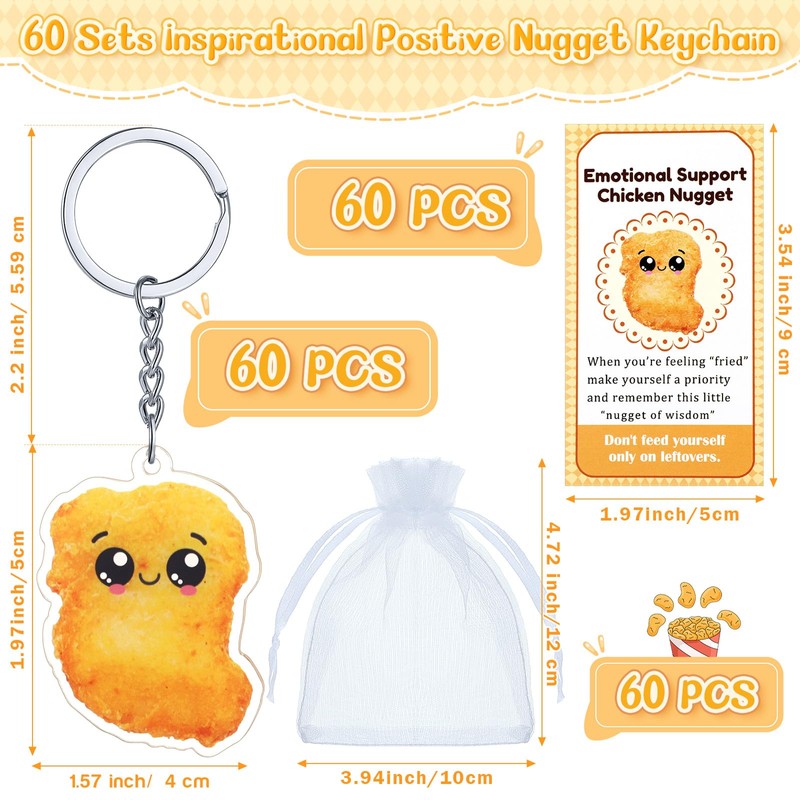 - Generous Packaging: with this purchase, you'll have thirty sets of this amazingly crafted inspirational set, each containing an acrylic chicken nugget keychain, a card, and an organza ribbon; This sizable quantity and ideal combination are more than sufficient to cater to your needs and are suitable for sharing with family