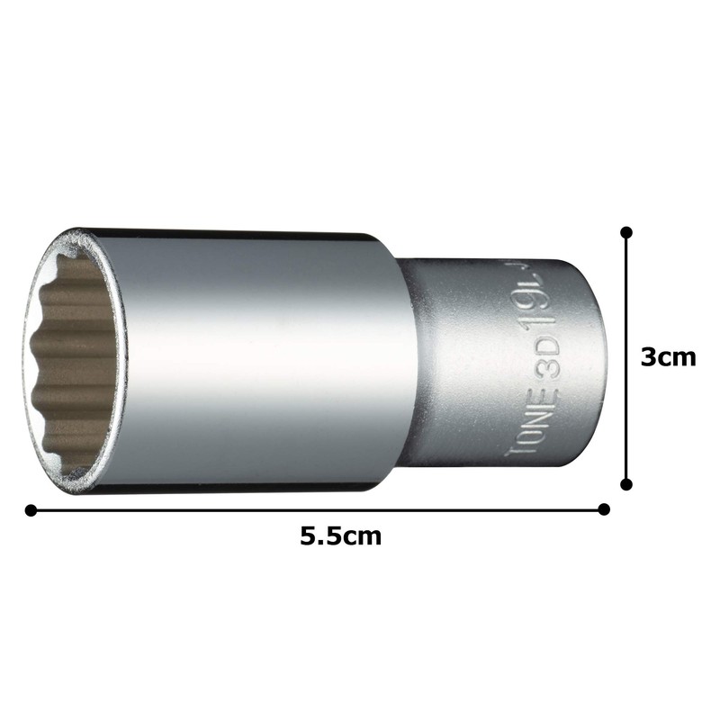 Tone HP3D-19L Deep Socket (12 Square) Drive Angle 0.3 inch (9.5 mm) (3/8 inch), Double Side Width 0.7 inch (19 mm)