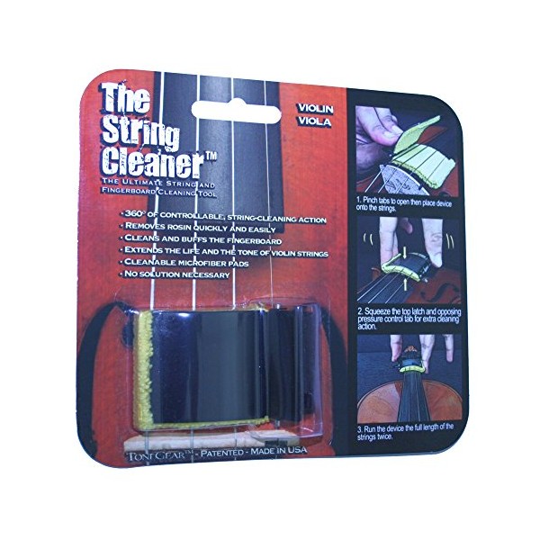 - The String Cleaner for Violin and Viola is a revolutionary device that cleans 360 degrees of all strings simultaneously