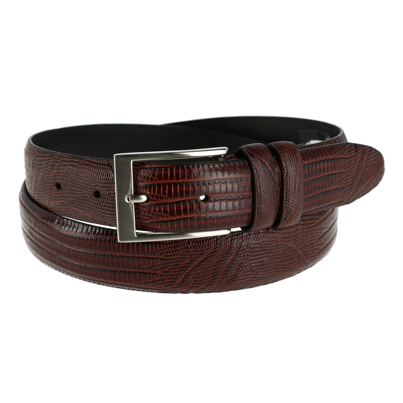 Toneka Men's Leather Embossed Lizard Print Belt, 34, Brown
