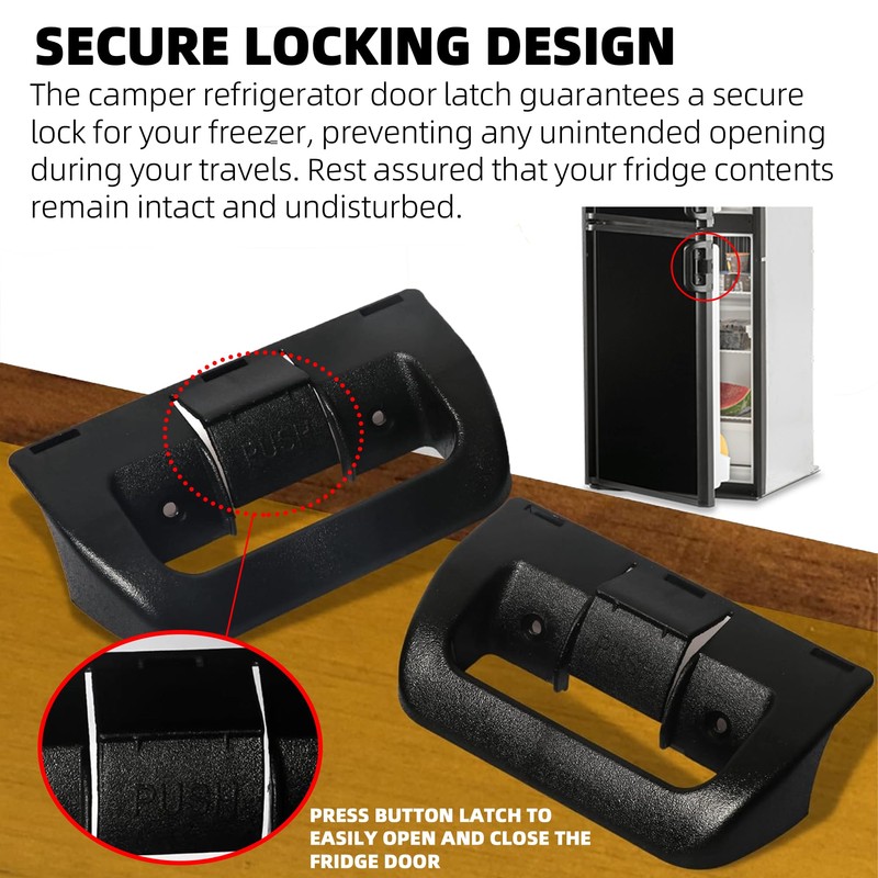 - SECURE LOCKING DESIGN - The camper refrigerator door latch guarantees a secure lock for your freezer, preventing any unintended opening during your travels. Rest assured that your fridge contents remain intact and undisturbed.