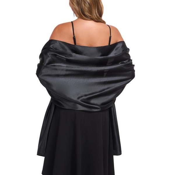 TONGFANTFL Shawls and Wraps for Evening Dresses Satin Women Long Scarf Wedding Guest Shawl Black