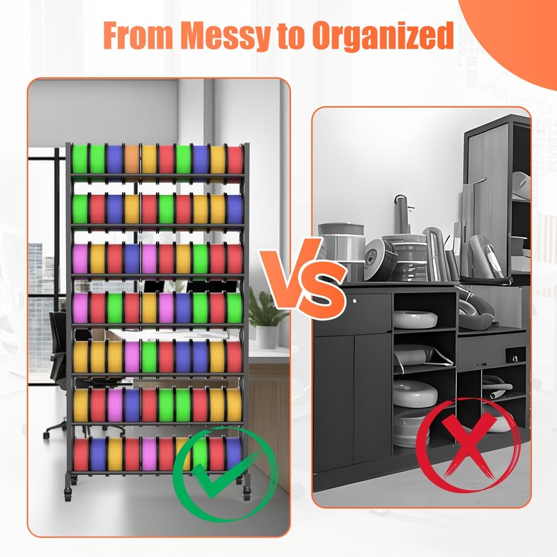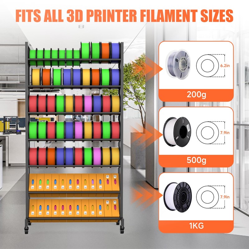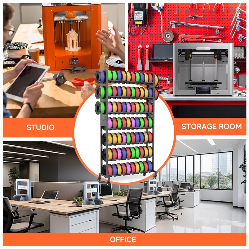 - 🗄️Large Capacity: TONGMO 3D Printer Filament Metal Storage Rack can hold up to 80+ 1kg ABS/PLA/TPU/Nylon filament spools, providing an ideal storage solution for 3D printing enthusiasts with expanding filament collections.