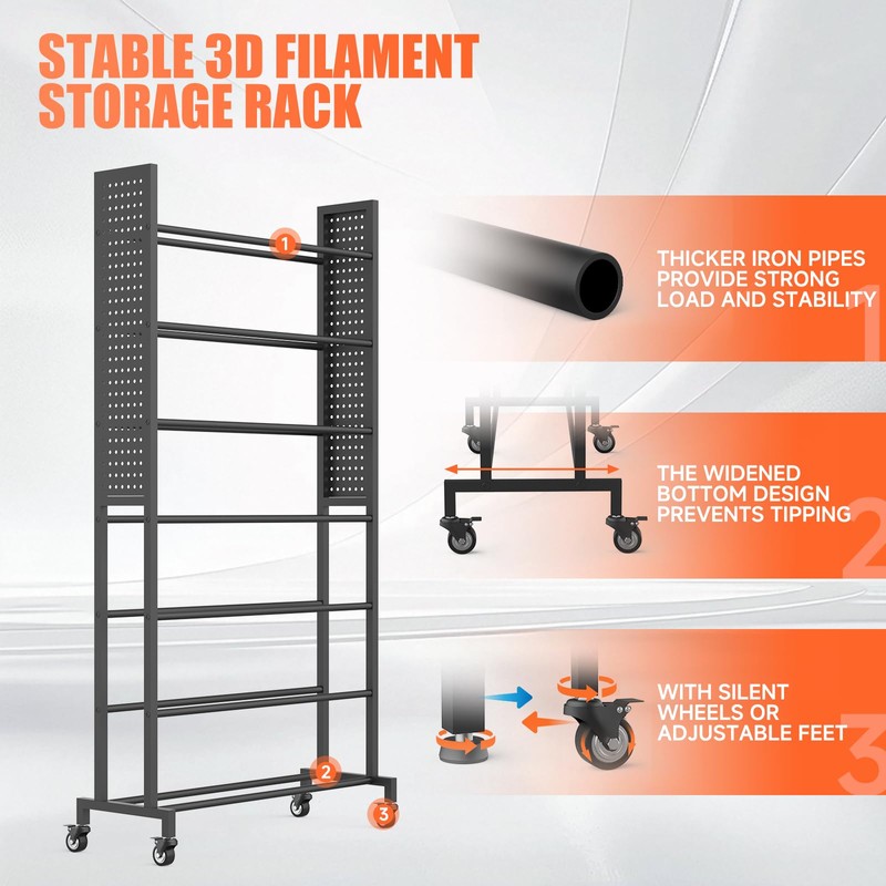 - ⚙️Mobility: Equipped with 4 locking casters, the rack glides smoothly across workshop floors, enabling seamless transfers from printing stations to storage areas.