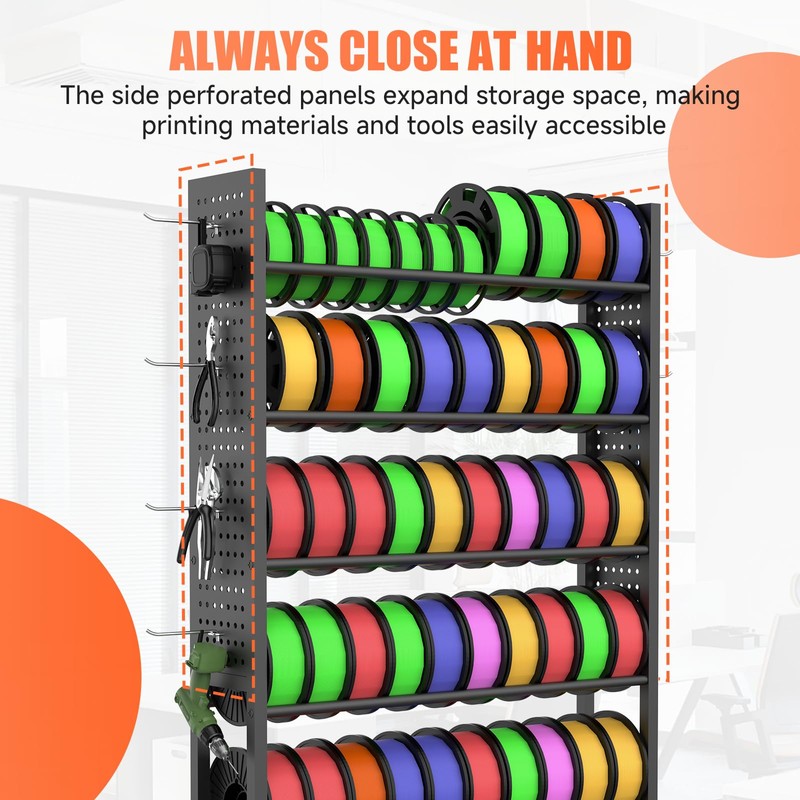 - 🔳Pegboard Design: Side pegboard panels expand the rack’s storage space, keeping printing materials and tools organized and easily accessible.