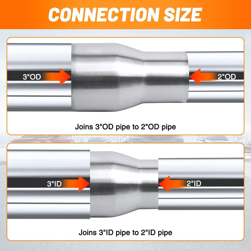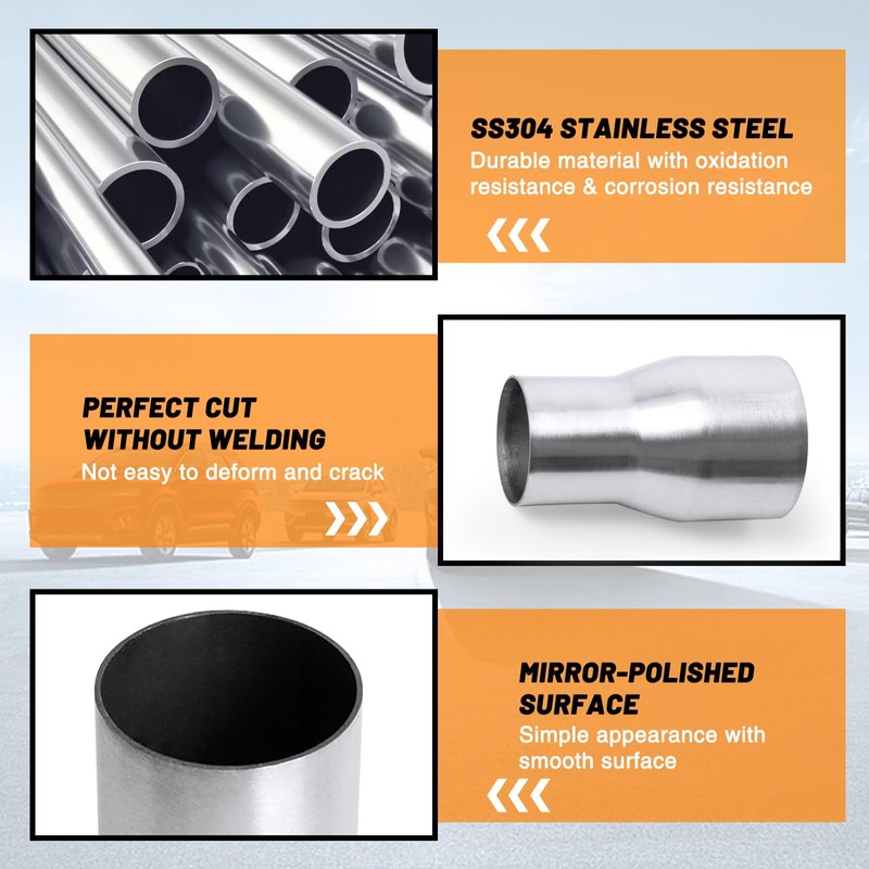 - ➤ DIY Exhaust Pipe: The exhaust reducer eliminates the gap and achieves a nice transition from 3" to 2",widely used for exhaust system. Suitable for any exhaust pipe, exhaust tip, resonator, muffler, connecting components of different sizes on both sides