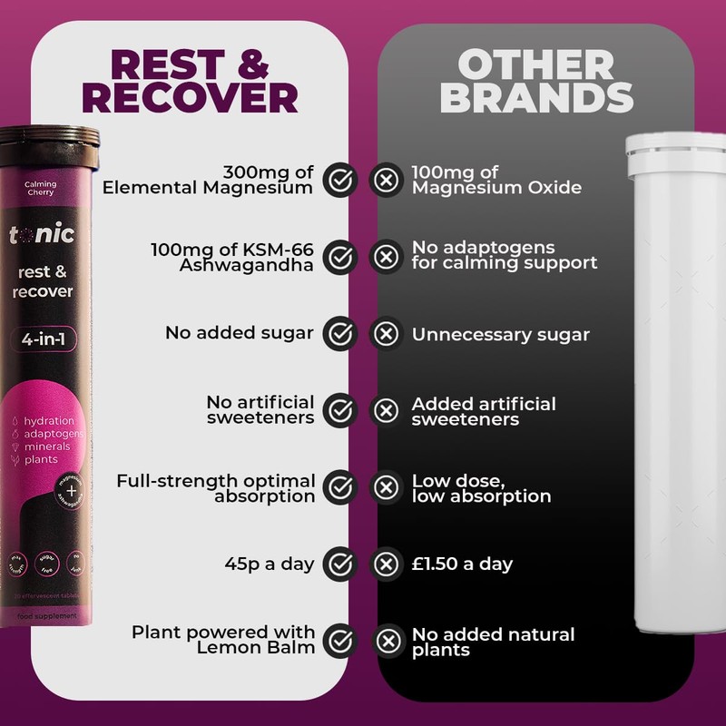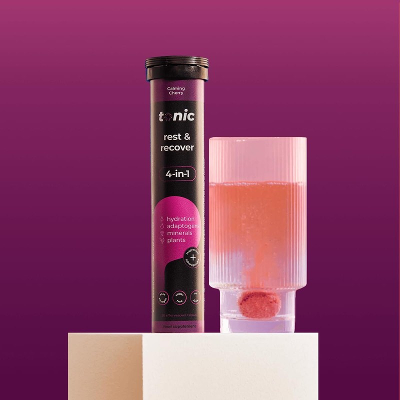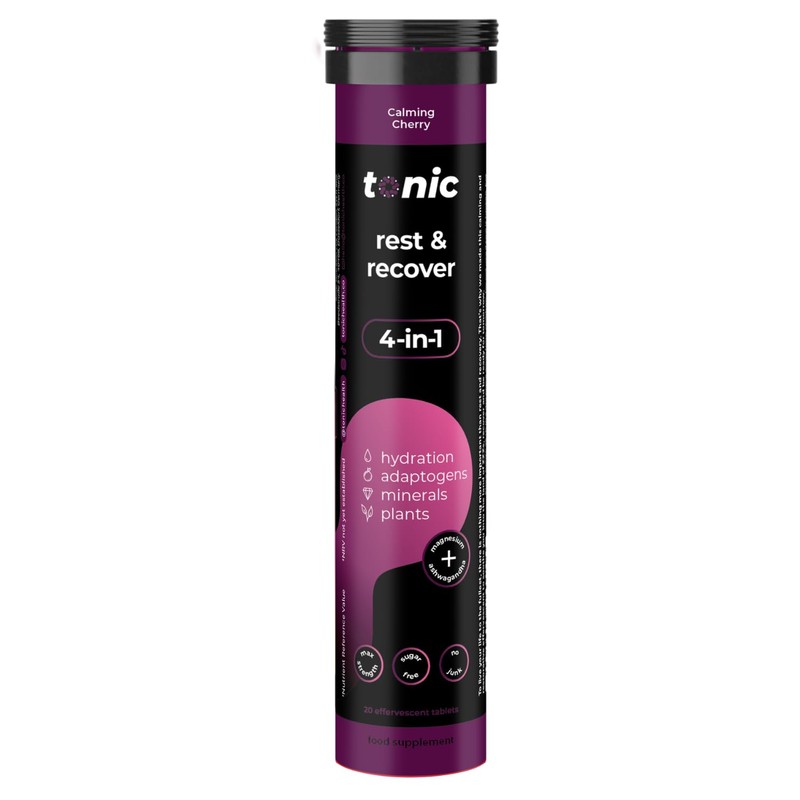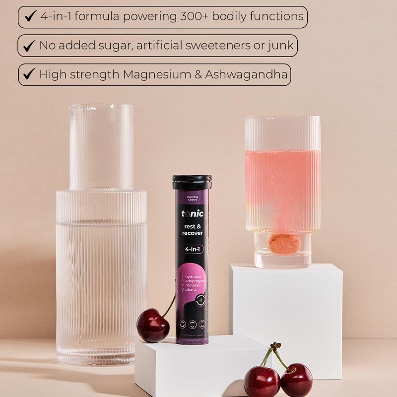 Tonic Health Rest and Recovery Magnesium Effervescent Tablets - 300mg Elemental Magnesium, Ashwagandha, Lemon Balm - No Sugar, Vegan Multivitamin - Relax and Recharge, Calming Cherry 60 Count