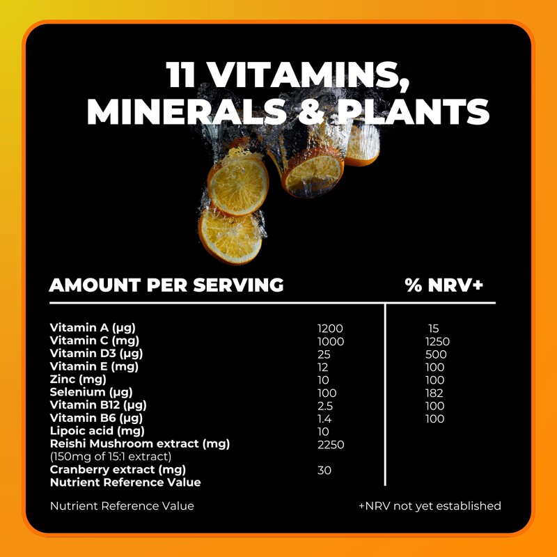 - FUEL YOUR HEALTH. Premium all in one immune support effervescent tablet. Fast-acting fuel for your daily health. Our plant powered immunity supplement supports active, modern lifestyles. Take them anywhere.