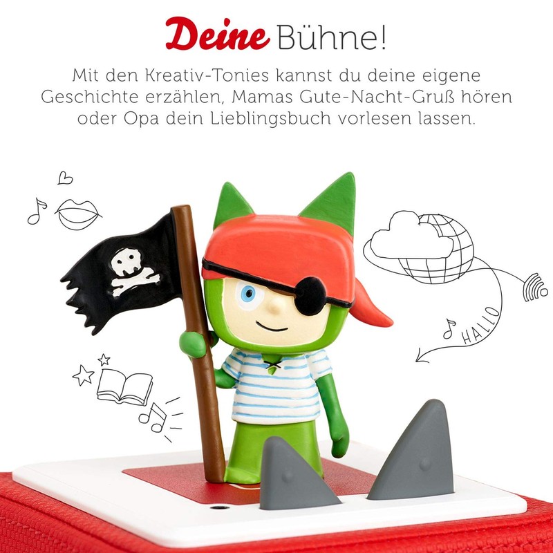 - Red headscarf, eye patch and blue-white striped shirt: this is exactly what pirates should look like! In the Tonie office, the buccaneer is therefore a very popular contemporary