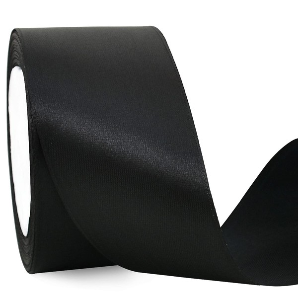 TONIFUL 2 Inch x 25 Yards Wide Black Satin Ribbon Solid Fabric Ribbons Roll for Valentine's Day Crafts Chair Sash Gift Wrapping Invitation Cards Floral Hair Bows Sewing Party Wedding Car Decoration