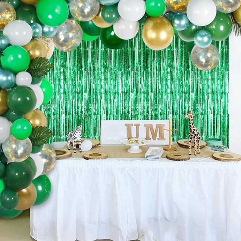 TONIFUL 3Pcs Green Metallic Tinsel Foil Fringe Curtains,3.28ft x 6.56ft Green Photo Booth Backdrop Streamer Curtain,Photo Booth Props,Ideal for Bachelorette,Birthday,Christmas,New Year Party Decor