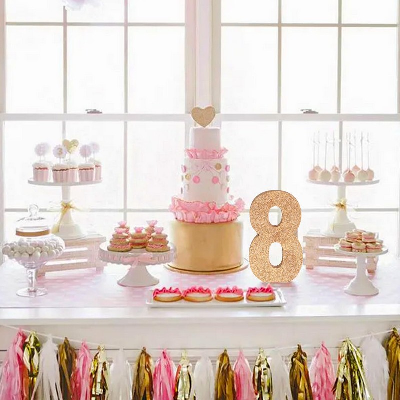TONIFUL 7.8 Inch Champagne Gold Glitter Number 8 Table Centerpiece 0-9 Birthday Party Decorations,Digit 8 for Birthday,Chrismas,Graduation,Bridal Shower,Valentine's Day,Anniversary Party Supplies