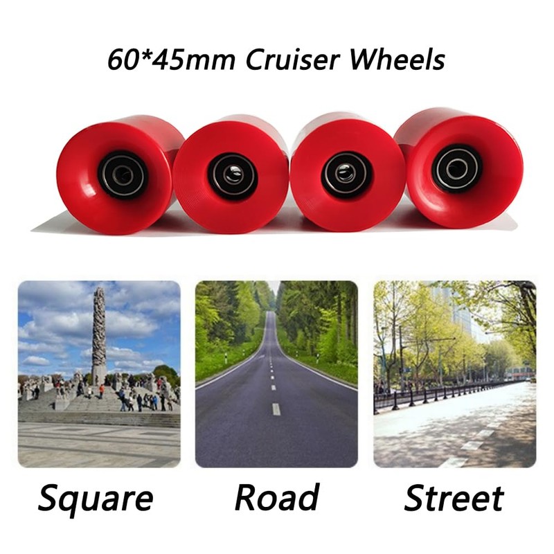 The 60mm skateboard wheel is the perfect medium-sized long board cruiser wheel,suitable for freestyle skills and helping you complete street skills well.The rolling is very smooth,suitable for street skating and skateboarding park terrain.