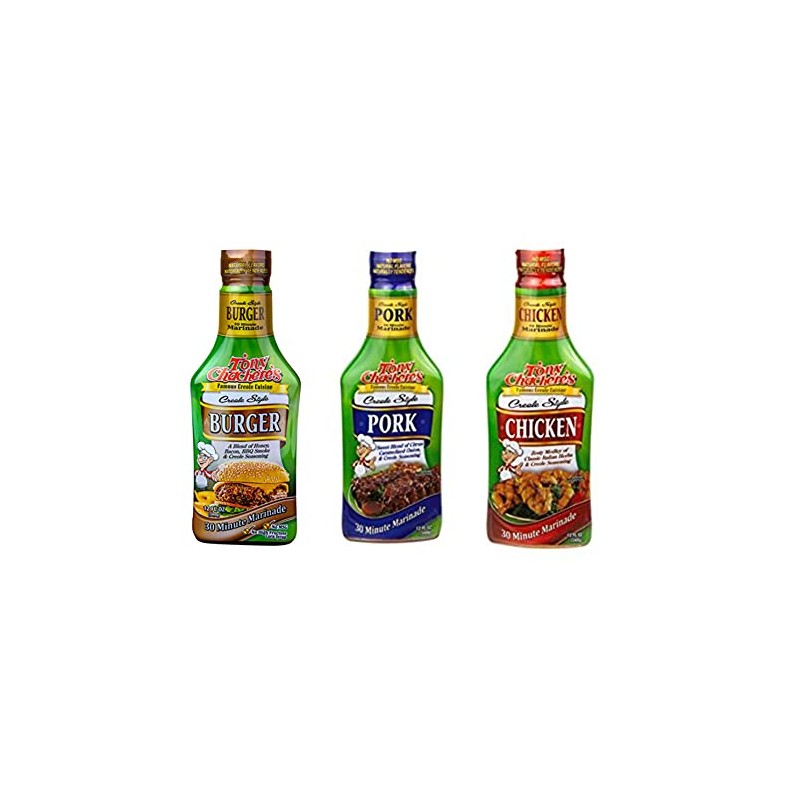- Contains: (1) 12 ounce beef marinade, (1) 12 ounce pork marinade, (1) 12 ounce chicken marinade
