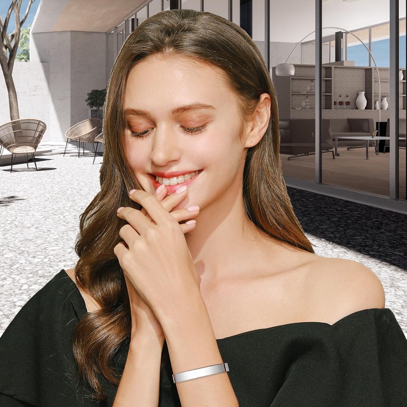 - 【 Premium Quality 】 This silver bracelet is made from hypo-allergenic surgical grade 316L stainless steel for long life. It will never fade, rust, tarnish, corrode, stain. Each cuff bracelet has been polished many times both outside and inside to avoid scratching your wrist. Moreover the engraving inscription is very clear to read. Comfortable for daily wear.