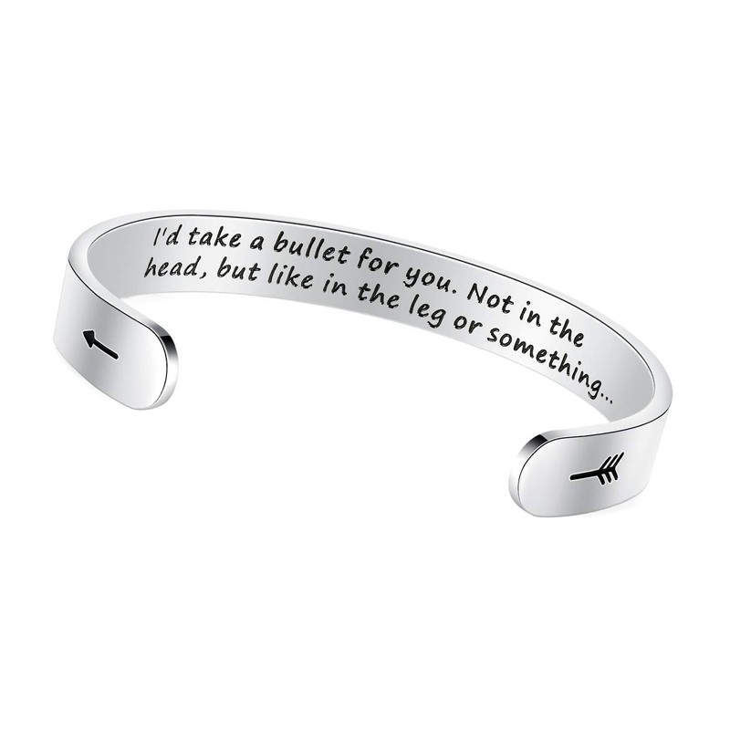 - 【 Best Friend Gifts for Women 】 This best friend bracelet etching with hidden message "I'd take a bullet for you, not in the head, but like in the leg or something” inside for your knowledge only. It’s a funny gifts for your best friends, daughter, sisters, BFF and girls. It looks super cute and the message is hilarious. Perfect gifts for couples.