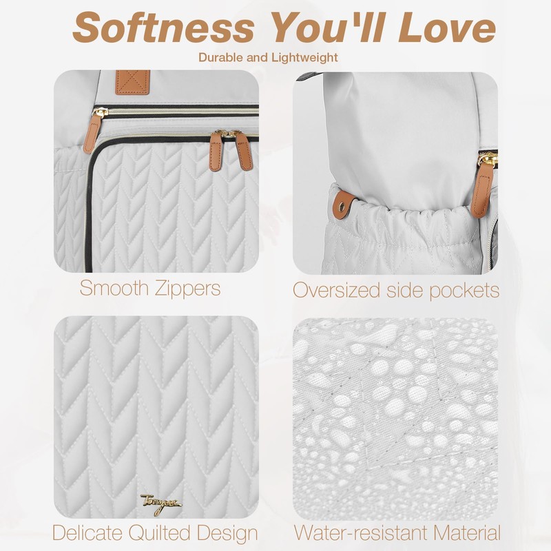 - Top Materials:Tonyeee diaper bag with 3D herringbone nylon quilting,achieve a perfect blend of practicality and fashion. While studded feet in the bottom keep the bag clean and off the ground