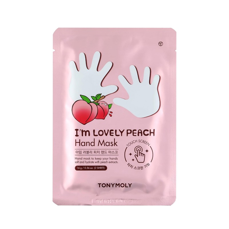 TONYMOLY I'm Lovely Peach, Hand Mask for Dry Skin, Hydrating, Moisturizing Plum, Peach, Honeysuckle Extract, 5pk