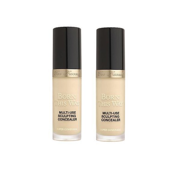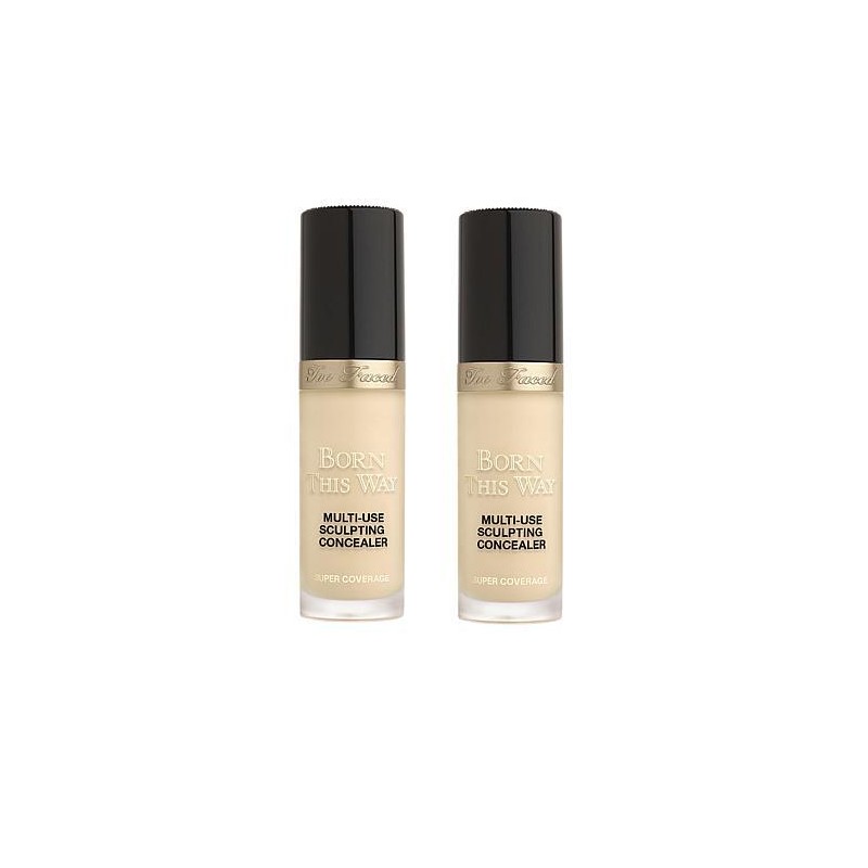 - Too Faced 2-pack Born This Way Super Coverage Concealer What It Is Hydrating, full-coverage, weightless 4-in-1 concealer that helps you conceal, contour, highlight and retouch your look. What You Get (2) .50 fl. oz. Born This Way Super Coverage Sculpting Concealer What It Does Can be used for concealing, contouring, highlighting, and retouching Diamond doe-foot allows product to be applied in thick lines using the flat surface, as well as thinner lines using the side and tip for precision coverage Weightless wear Hydrating so skin is never dry or cakey How to Use To Retouch/Conceal under eyes and hide Hyperpigmentation: place a dot from the flat side of the diamond doe-foot applicator directly on area of discoloration and blend into skin with fingers, concealer brush (or All-Over Shadow Brush from Teddy Bear set) or Beauty Blender-type sponge in a pressing (stippling) motion until flawless Conceal blemishes: place a dot from the tip of the diamond doe-foot applicator on blemish for precision coverage Use edge or tip of applicator to sculpt with a finer line for precision highlight and contour; use flat side for fuller delivery Contour: Choose neutral to cool-toned shades 3 tones darker than skin tone to create a believable shadow and shape. Highlight: Choose a shade 2-3 shades lighter than your natural skin tone and in your same undertone. Made in Italy