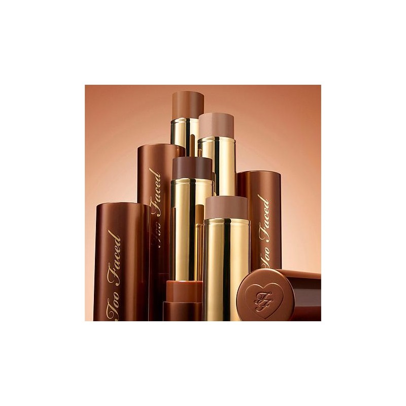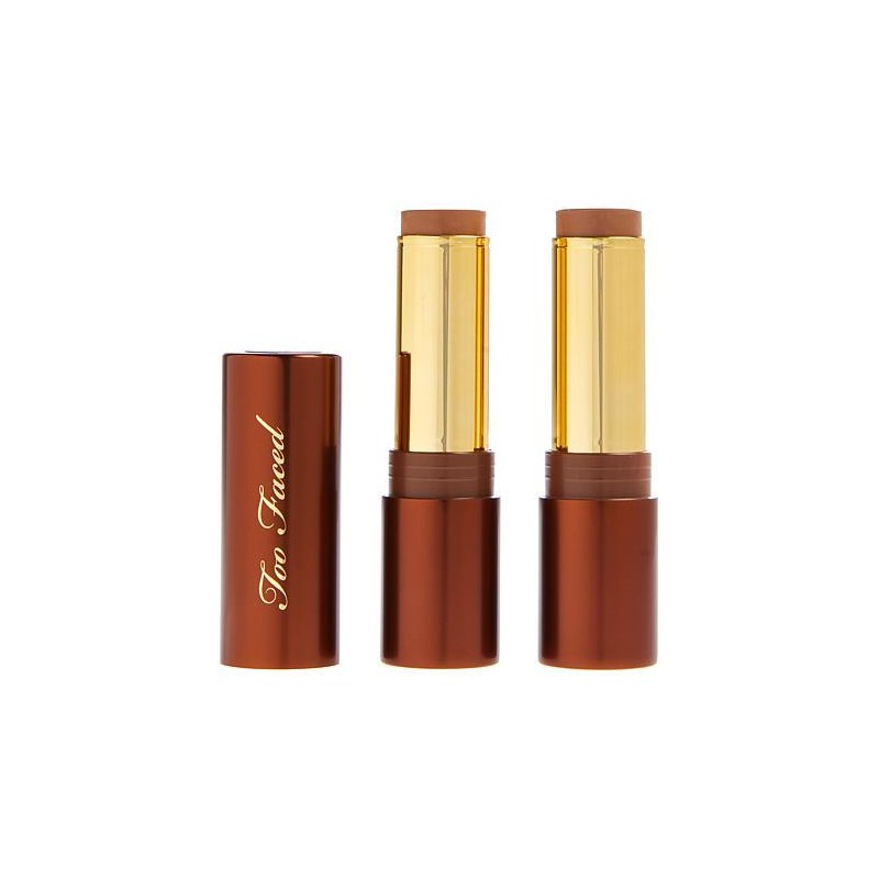 Too Faced 2-pack Chocolate Soleil Bronzing Stick What It Is Be a bronzed goddess with this creamy, buildable and blendable stick bronzer that provides natural-looking warmth and dimension. The lightweight formula glides on without tugging skin or lifting foundation to leave you with a perfectly sunkissed, natural-looking finish. What You Get (2) .28 oz. Chocolate Soleil Bronzing Stick What It Does Lightweight Natural-looking finish Won't disturb makeup Made with skincare ingredients Made with skin-loving Vitamin E and squalane How to Use After applying foundation, swipe stick over areas of the face you wish to bronze. Focus on areas where the sun would naturally hit: cheeks, nose, forehead, chin and hollows of cheeks. Using fingers, a brush or a sponge, tap or buff into skin until desired look is achieved. Recap bronzer to keep it soft and creamy.