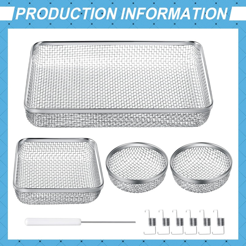 - Specification: The size of the rectangular filter screen is 8.5 x 6 inches (length x width), the size of the square filter screen is 4.5 x 4.5 inches (length x width), the size of the circular filter screen is: 2.8 inches (diameter), and the side length of each mesh is 0.16 inches