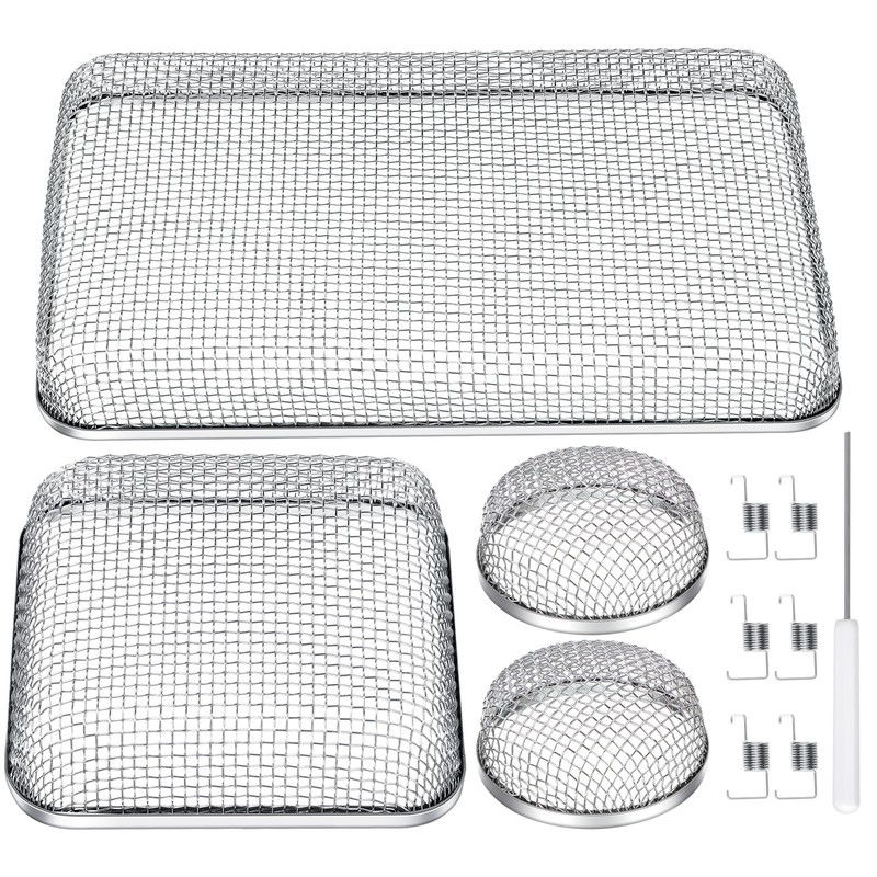TOODOO 4 Pack RV Furnace Vent Cover, RV Flying Insect Screen for RV Water Heater Vent Cover (8.5 x 6 Inch)(4.5 x 4.5 Inch) (2.8 Inch) Stainless Steel Mesh with Installation Tool