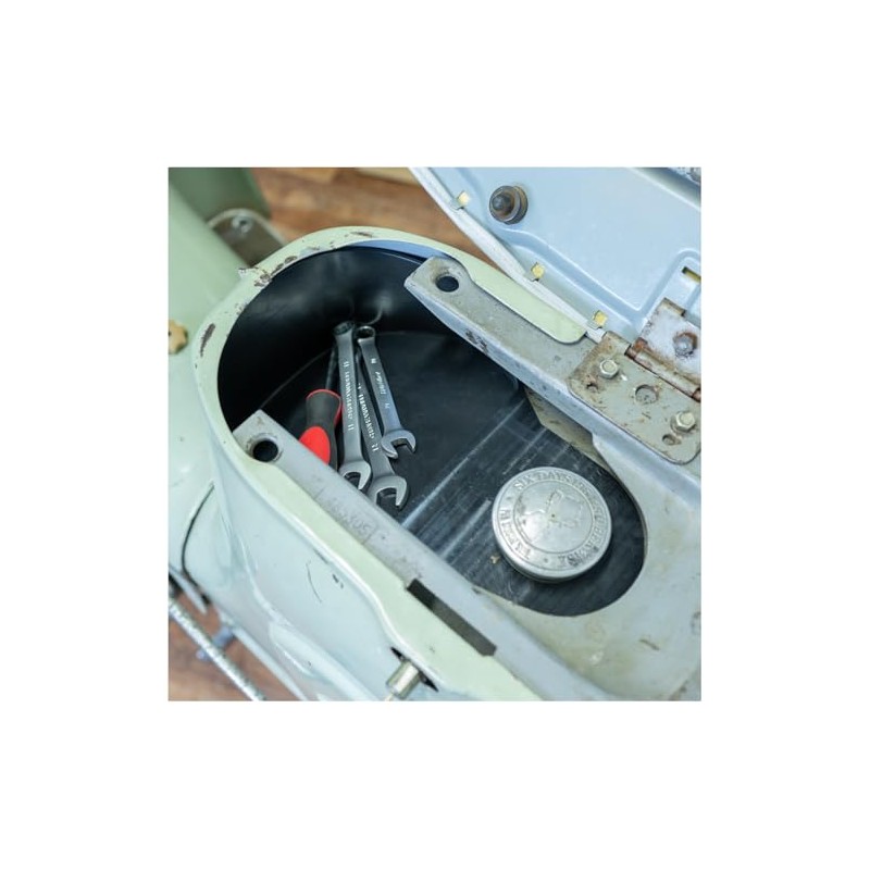 Made of dimensionally stable rubber and injection moulding process, the tool tray is easily attached to the tank cap and then pressed under the tank. Thanks to the flexibility, the tool compartment fits on any KR51 and not only ensures that small parts such as nuts and screws are safely stored, but also ensures that the paint on the tank and on the tank remains intact.