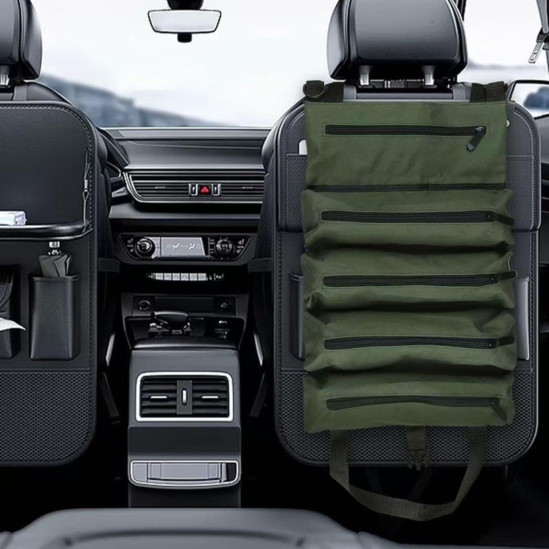 Tool Roll Bag, Canvas Tool Bag with 5 Zip Pockets - Multi-Purpose Tool Organizer for Plumbers, Electricians & Craftsmen - Army Green
