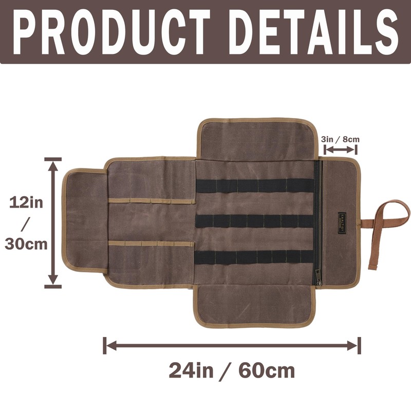 - Product Carrying: 3 sides flaps can prevent tools from slipping, canvas straps are easy to open and close the tool roll