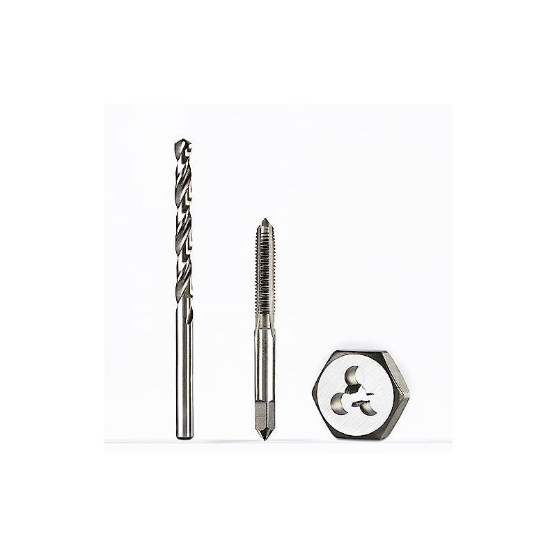 - Tap and die are made of Premium Alloy Steel, which can achieve a hardness of up to 63HRC. The drill bit is made of HSS, 65HRC hardness;