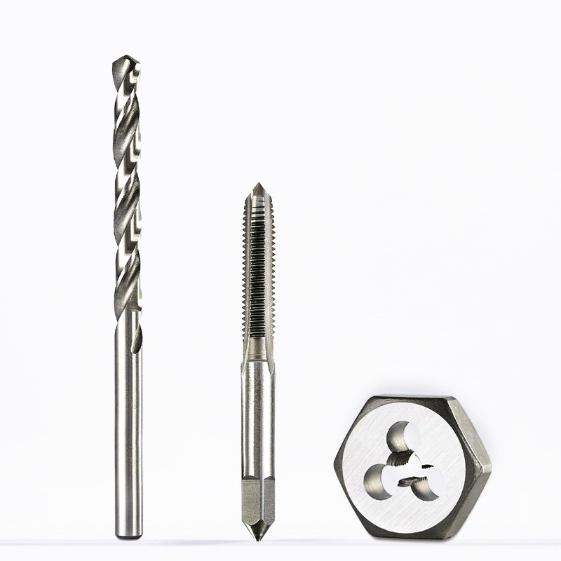 - Tap and die are made of Premium Alloy Steel, which can achieve a hardness of up to 63HRC. The drill bit is made of HSS, 65HRC hardness;