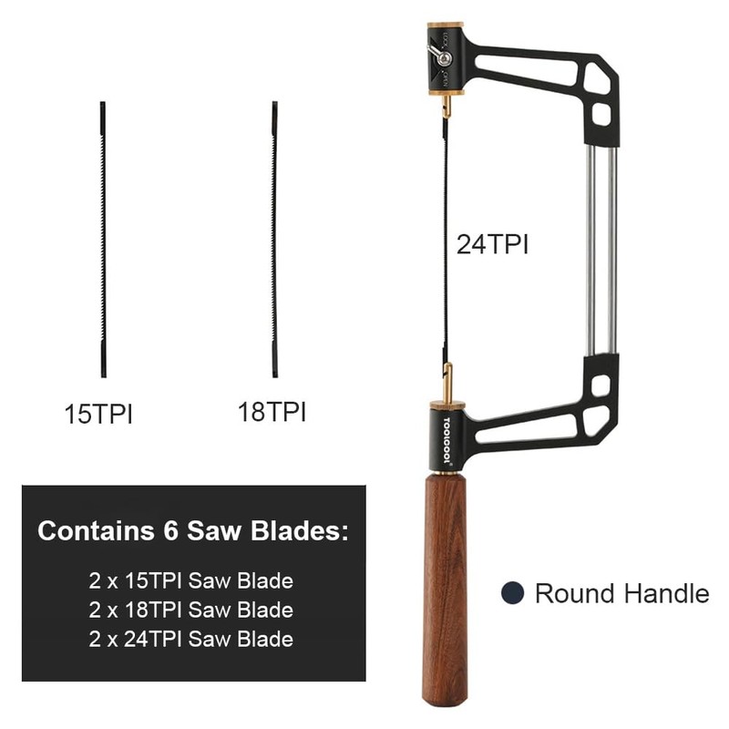 TOOLCOOL Coping Saw for Woodworking Aluminum Alloy Frame Hardwood Round Handle Handsaw with 15T 18T 24T High Speed Steel Saw Blades
