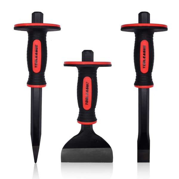TOOLEAGUE Heavy Duty Masonry Chisel Set,11 inch Point Chisel and Flat Chisel, 8 inch Brick Chisel With Hand Protection(3Pcs)