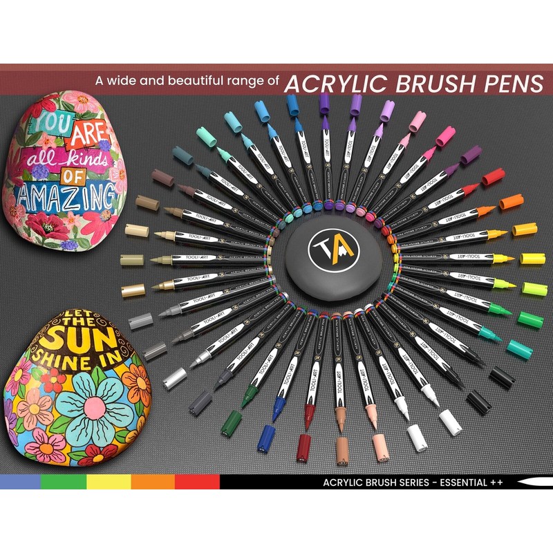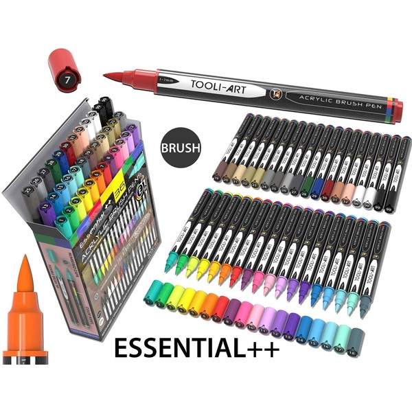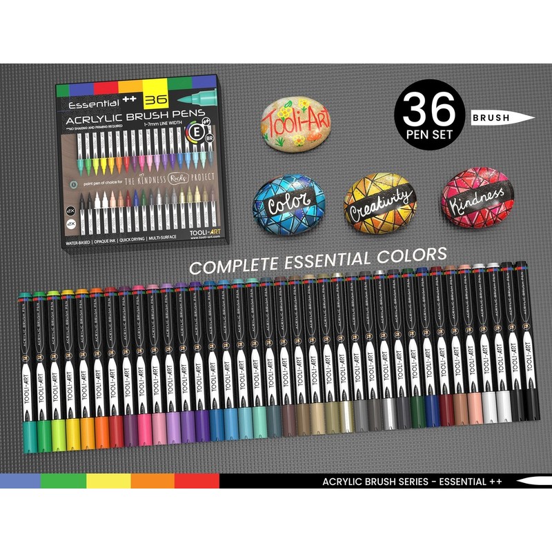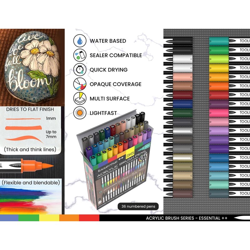 TOOLI-ART 36 Flexible Brush Tip Acrylic Paint Pens Markers Set 1-7mm