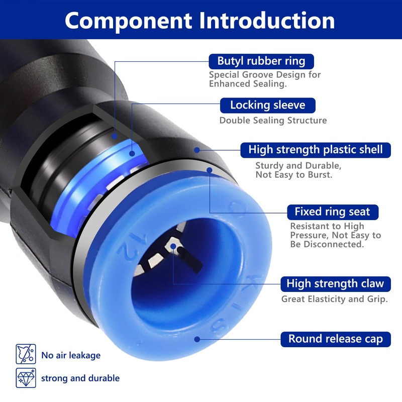 - ➤Easy to use: simple push-in design, connect to tube and provide secure connection without additional sealing