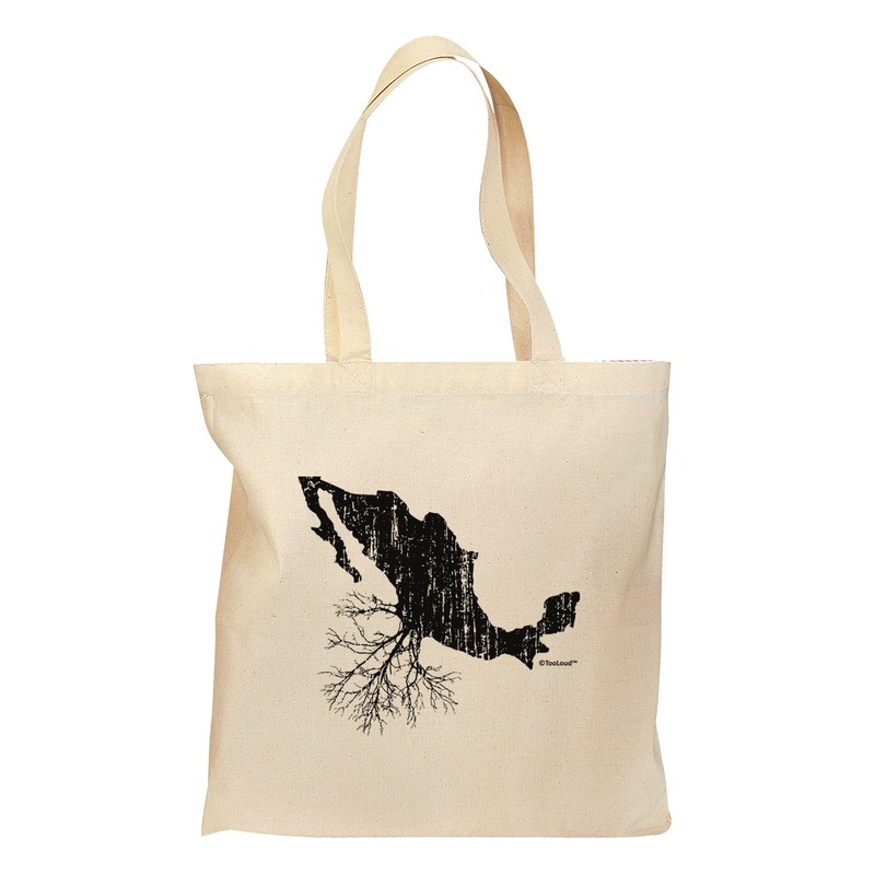 TOOLOUD Mexican Roots Design - Distressed Grocery Tote Bag - Natural