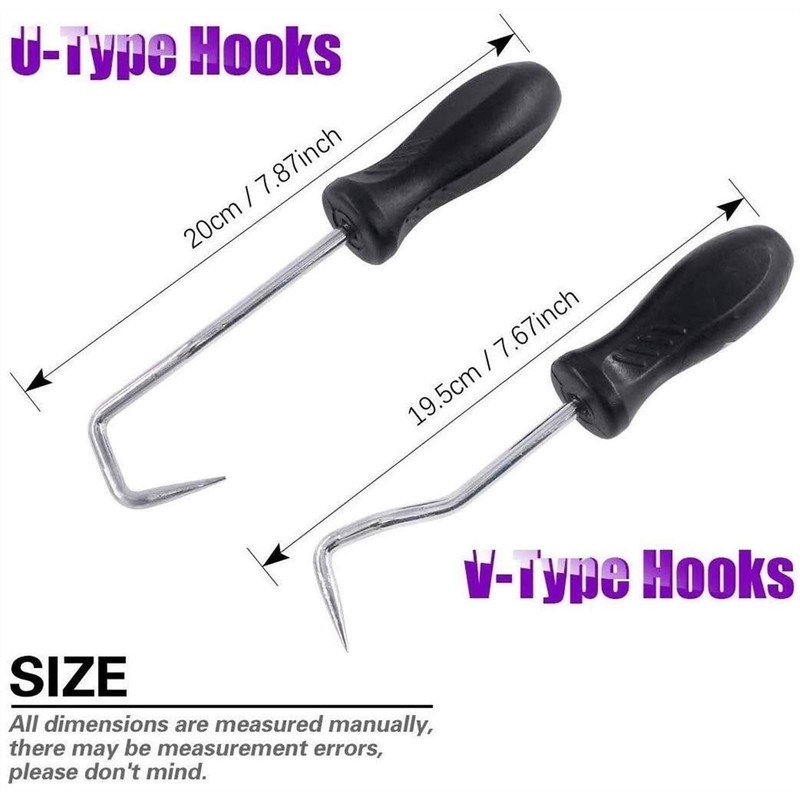 - WITH HOSE REMOVAL HOOK SET ----- This kit Works great when paired with Hose Clamp Pliers, Two hook designs to fit between various fittings and hoses. Length: 210mm V Type and U Type. Essential tool for fixing CV boots, Crimps and flattens clamps on ear type CV joint boot clamps. Includes a built in cutter and winding mechanism.