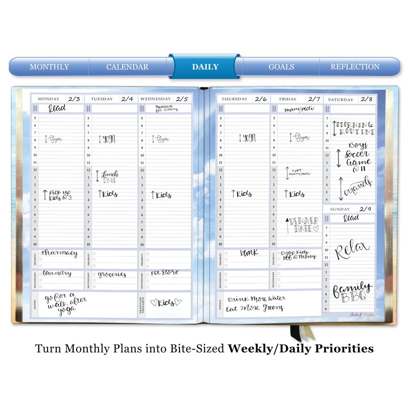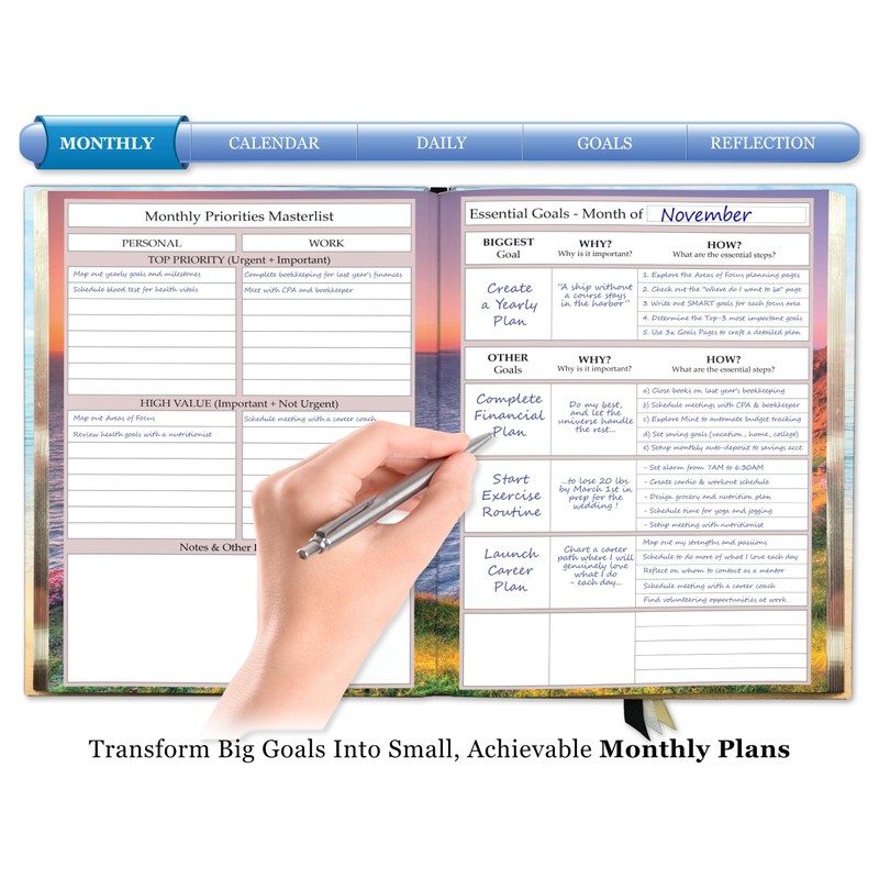 • 5-in-1: Daily Planner - Weekly Planner - Monthly Planner - Yearly Goals - Non Dated Calendar