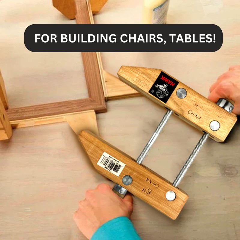 GRIPPICLAMP Heavy-duty 6" (15.2 cm) Wooden Clamp | Adjustable Handscrew | Ergonomic Wooden Handles & Aluminum Threads | Non-Marring | Ideal Woodworking Projects Delicate & Rugged